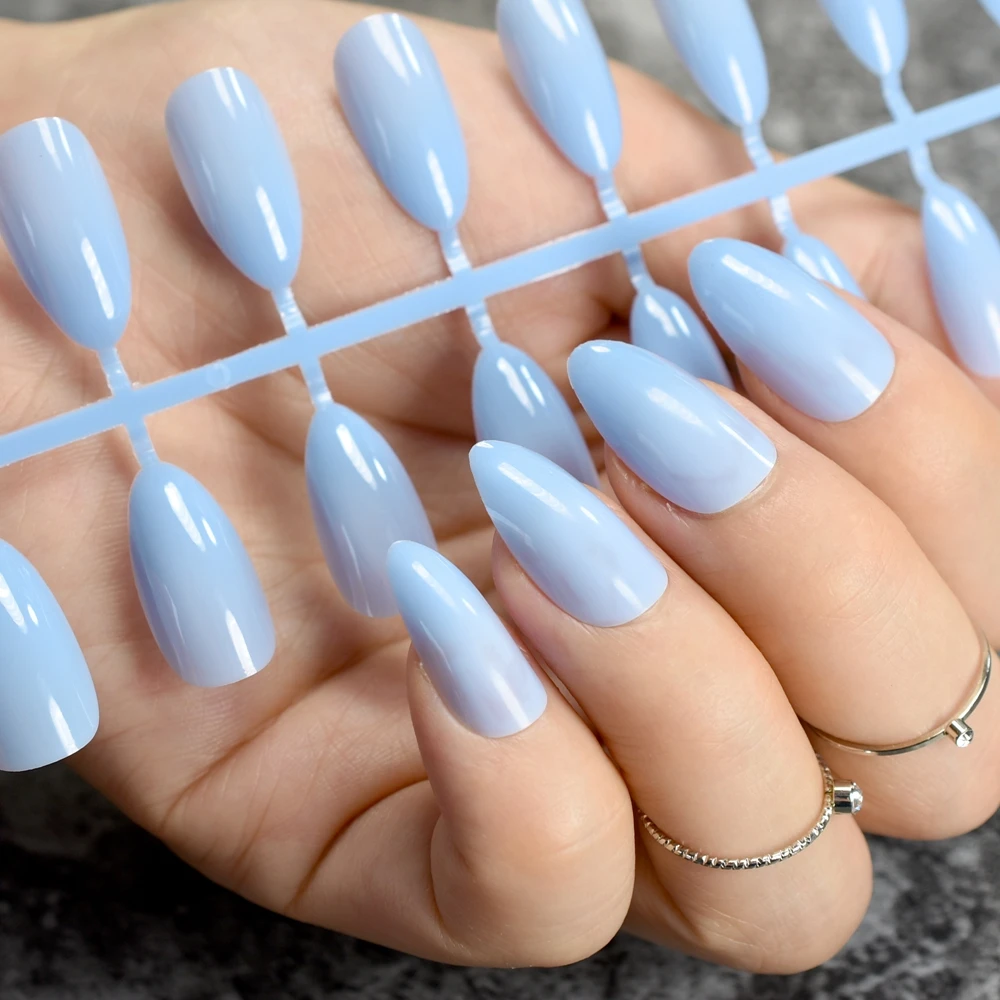Matte Light Blue Coffin Nails Pastel Blue Press Glue On Long Or Short Wedding Acrylic False Fake Nails Stiletto Square Oval Glossy