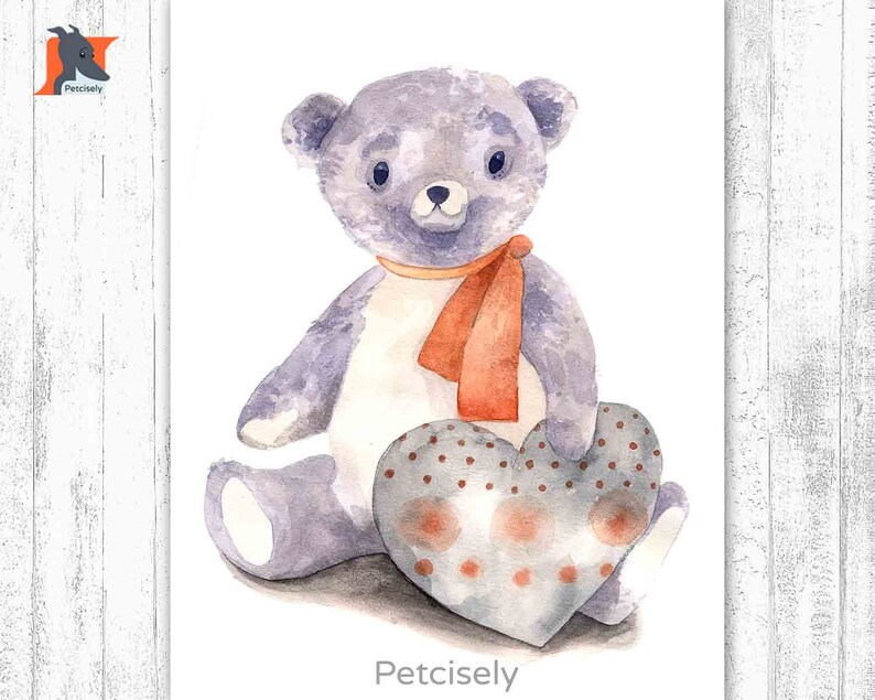Printable Watercolor Teddy Bear Drawing Wall Art Gift Idea Gender Neutral For Nursery Printable Last Minute Baby Shower Gift