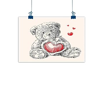 The Drawing Of Cute Teddy Bear With Red Balloon Printable Art Digital File Instant Download