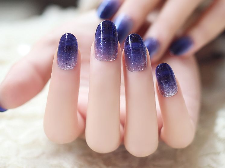 Us 0 81 18 Off 24pcs Oval Round Fake Nails Candy Baby Blue Acrylic Nails Full Cover False Nail Art Tips In False Nails From Beauty Health On