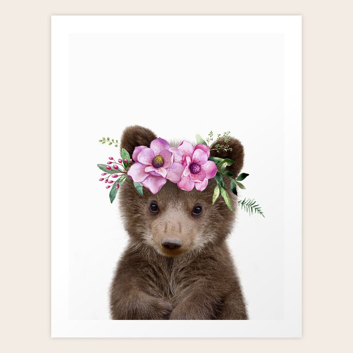 Baby Bear Cub With Flower Crown Art Print By Amypetersonartstudio