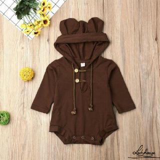 Ld Infant Baby Boy Girls Bear Ear Hoodie Romper Fall Long Sleeve Cotton Onesie Jumpsuit Bodysuit